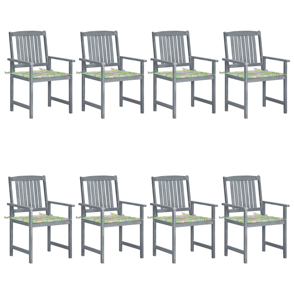 vidaXL Trädgårdsstolar med dynor 8 st massivt akaciaträ grå