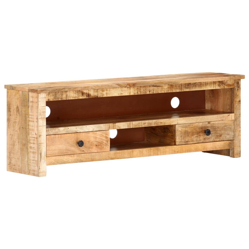 TV-bänken i trä blir en vintage detalj i ditt sovrum och vardagsrum! Stereobänken är tillverkad i massivt grovt mangoträ, ett tropiskt lövträ som är starkt nog att bära vikten. Det står även emot tidens tand, vilket gör det stabilt och hållbart. Hantverket och de vackra träådringarna gör varje möbel unik och något olik de andra. Denna mediaenhet har även 2 lådor och 2 utrymmen med gott om förvaringsplats för att hålla viktiga saker i ordning och inom räckhåll. OBS: Färger och ådringar varierar från möbel till möbel, vilket gör varje produkt unik. Leveransen är slumpartad.