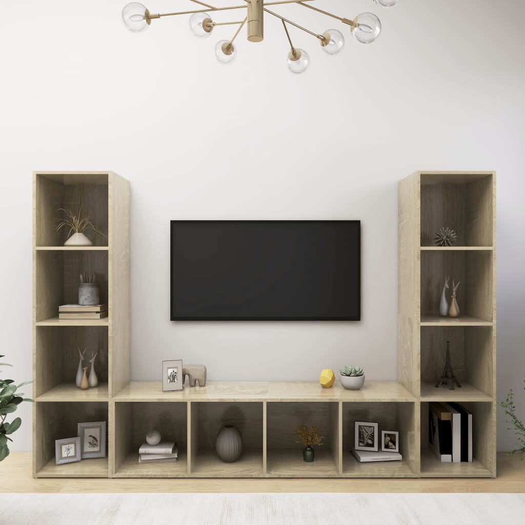 vidaXL TV-skåp 3 st sonoma-ek 142,5x35x36,5 cm spånskiva