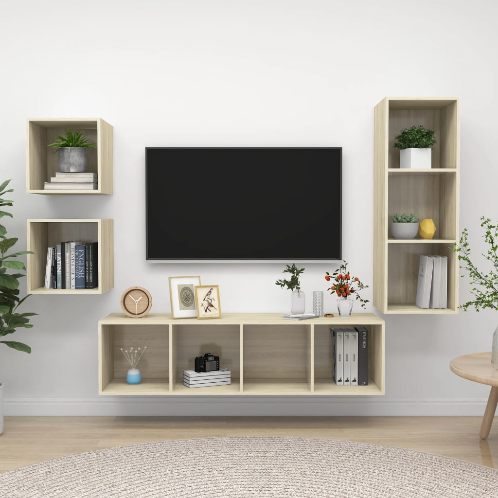 vidaXL TV-skåp 4 delar sonoma-ek spånskiva