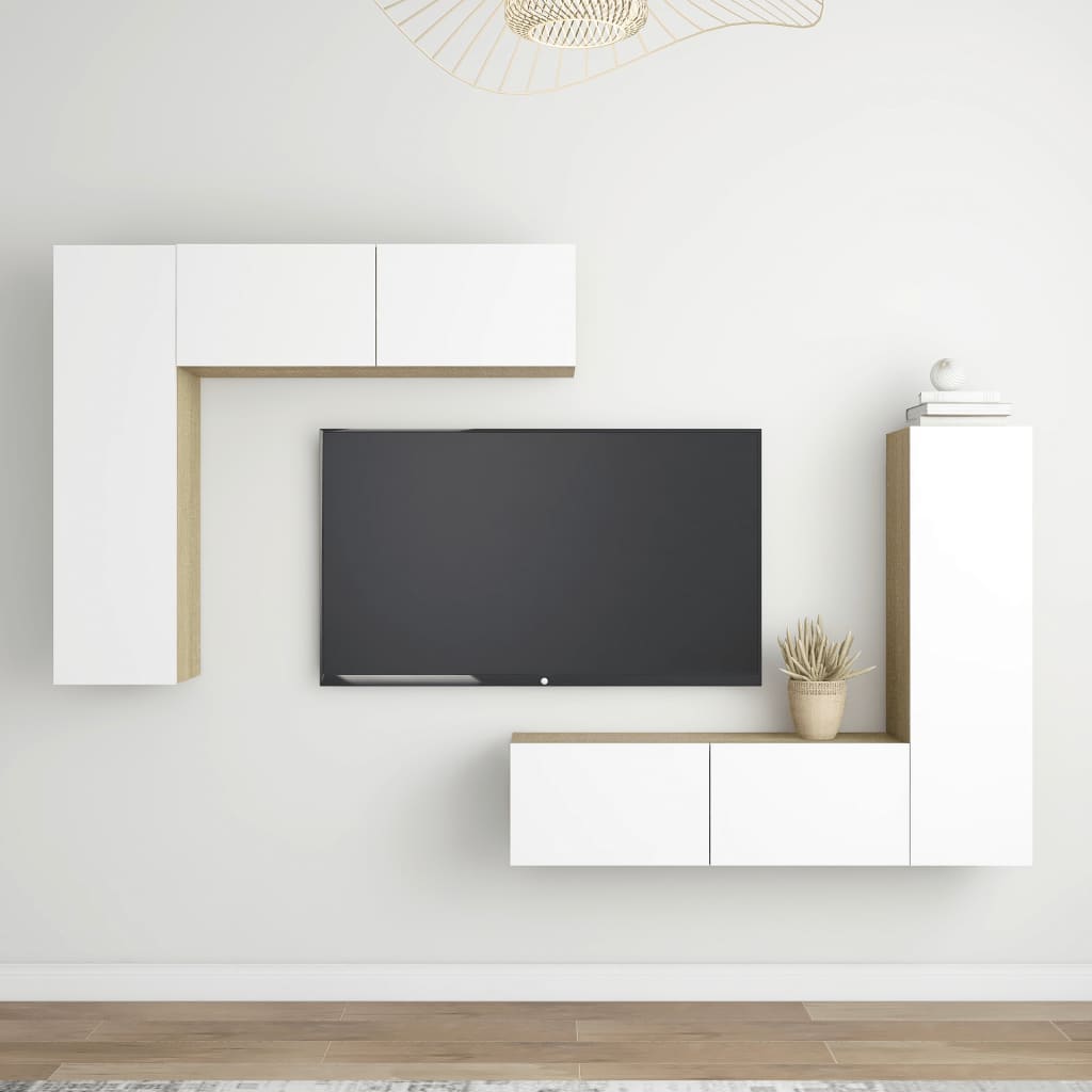 vidaXL TV-skåp 4 delar vit och sonoma-ek spånskiva