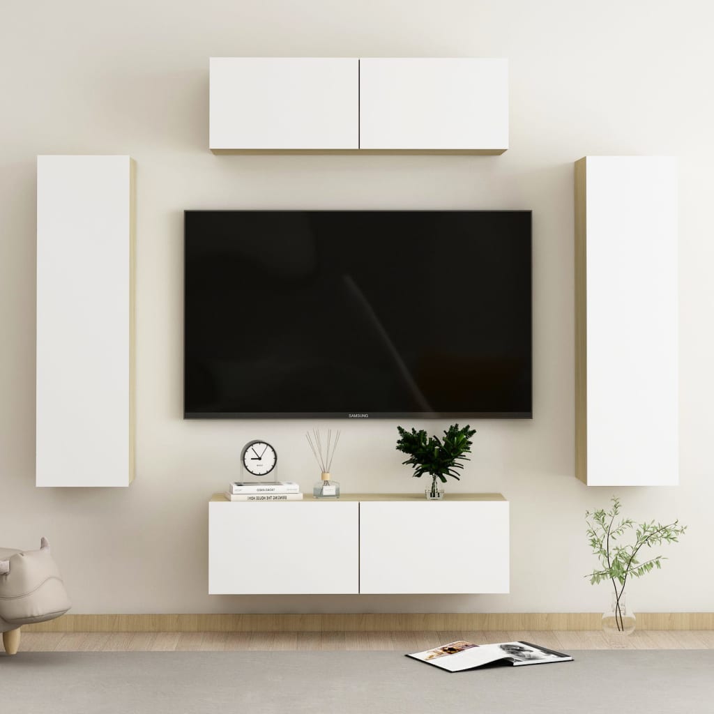 vidaXL TV-skåp 4 delar vit och sonoma-ek spånskiva