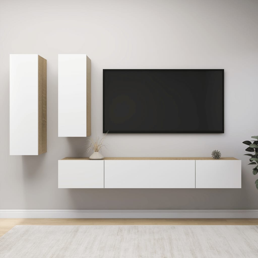 vidaXL TV-skåp 4 delar vit och sonoma-ek spånskiva