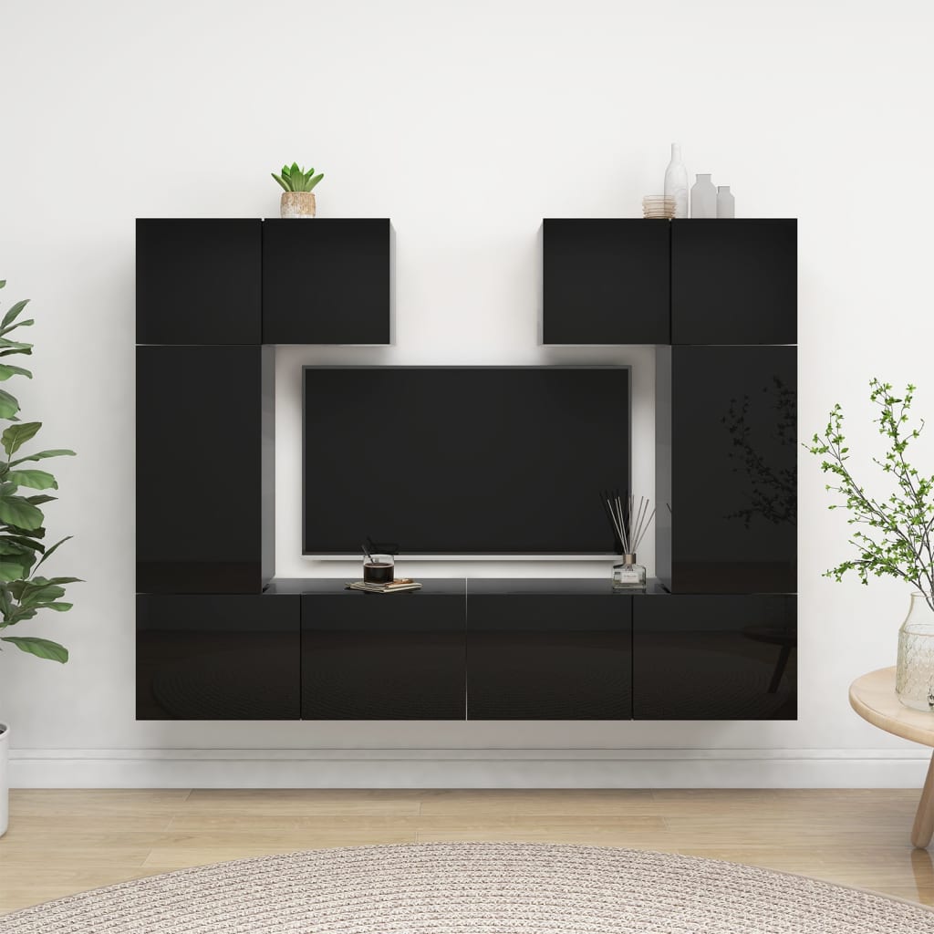 vidaXL TV-skåp 6 delar svart högglans spånskiva
