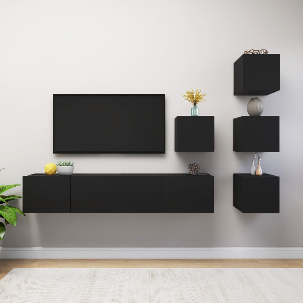 Denna uppsättning TV-skåp med modern design och stort förvaringsutrymme blir en mittpunkt i ditt vardagsrum. Dessa hängande TV-skåp är tillverkade i spånskiva, vilket gör dem robusta och hållbara. Skåpsetet monteras till väggen, vilket gör det till ett tidlöst tillskott i ditt hem. Setet har flera fack som gör det till en bra plats för förvaring av alla dina tidskrifter, DVD-skivor eller andra föremål. Detta skåpset är enkelt att rengöra med en fuktig trasa.