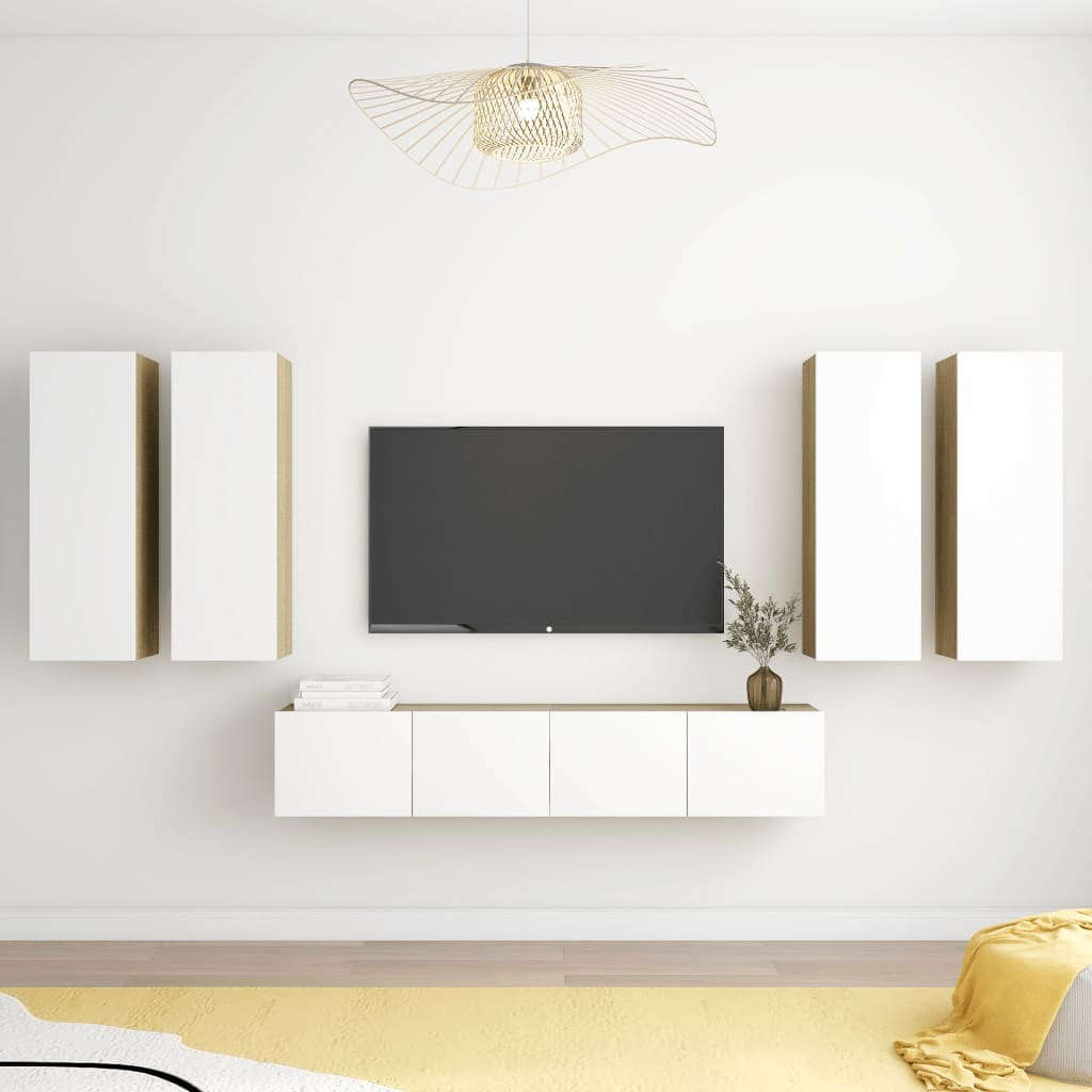 vidaXL TV-skåp 6 delar vit och sonoma-ek spånskiva