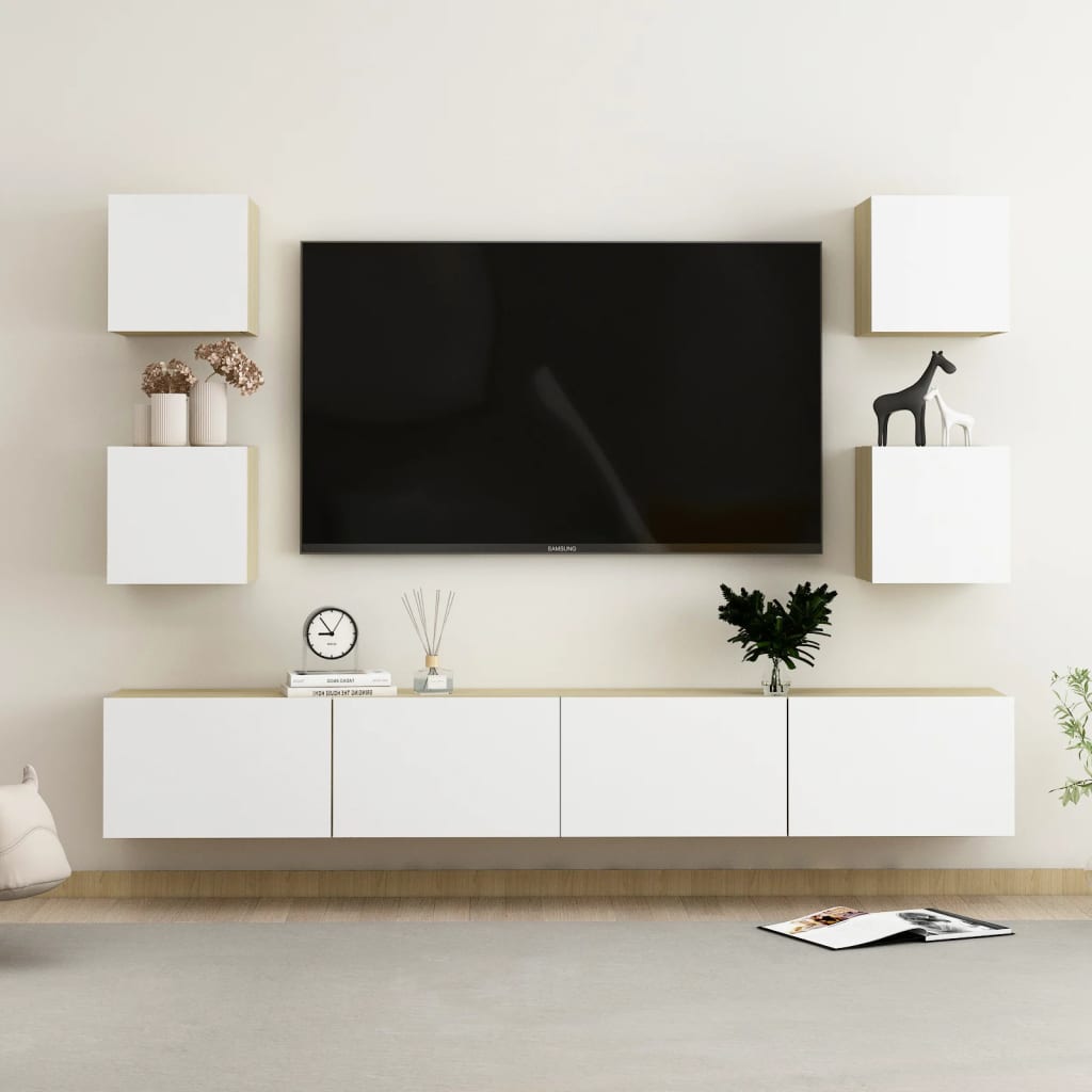 vidaXL TV-skåp 6 delar vit och sonoma-ek spånskiva