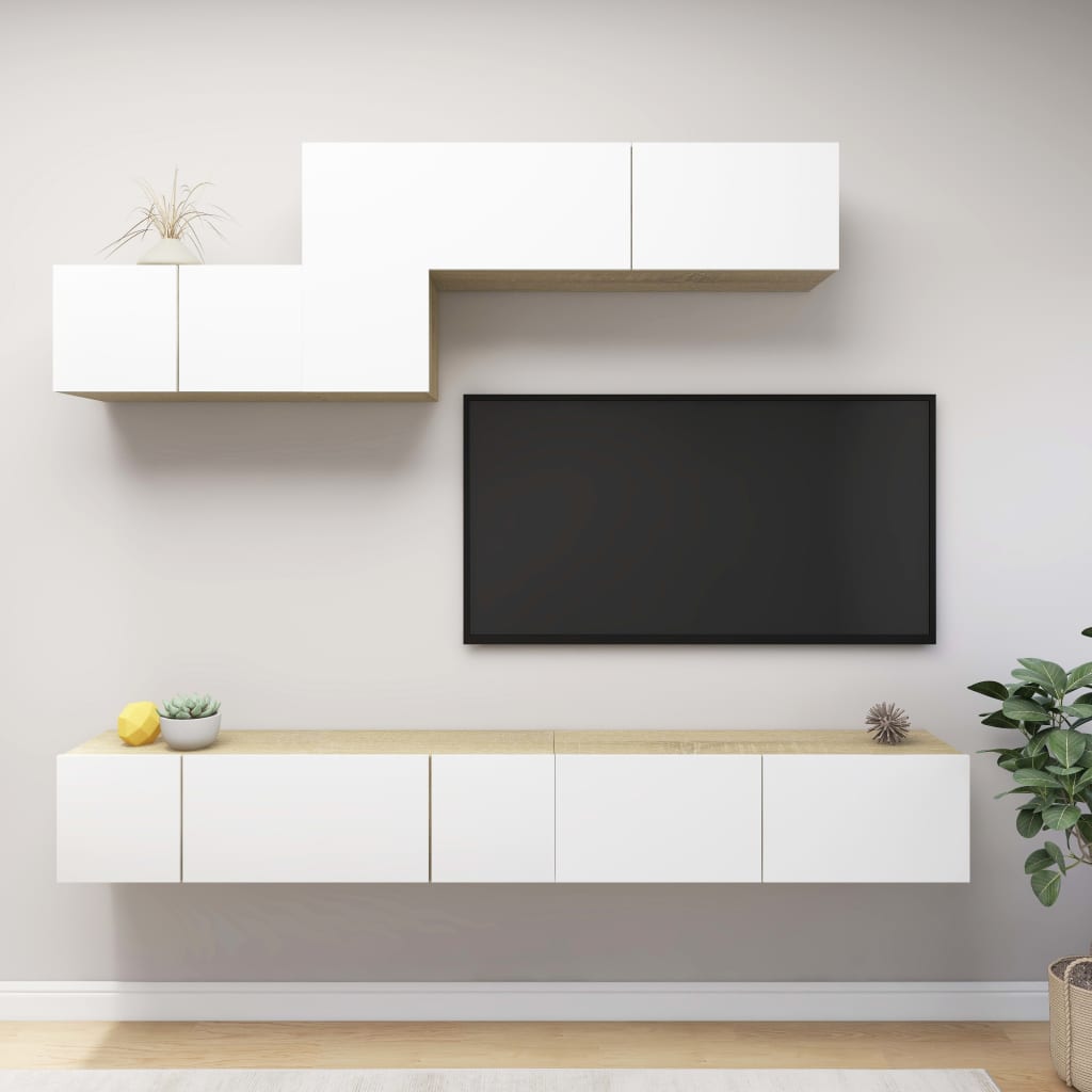 vidaXL TV-skåp 6 delar vit och sonoma-ek spånskiva