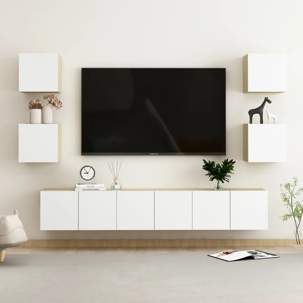 vidaXL TV-skåp 7 delar vit och sonoma-ek spånskiva