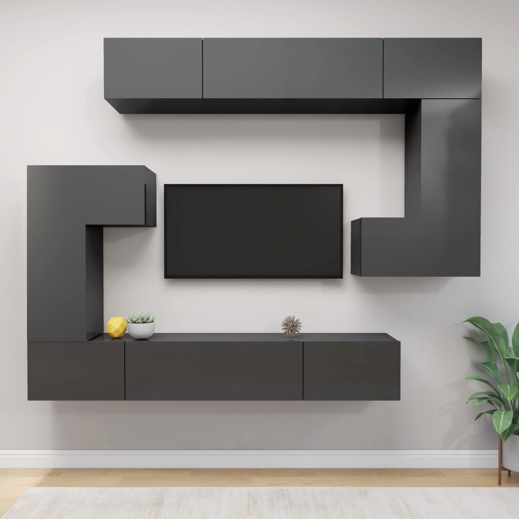 Denna uppsättning TV-skåp med modern design och stort förvaringsutrymme blir en mittpunkt i ditt vardagsrum. Dessa hängande TV-skåp är tillverkade i spånskiva, vilket gör dem robusta och hållbara. Skåpsetet monteras till väggen, vilket gör det till ett tidlöst tillskott i ditt hem. Setet har flera fack som gör det till en bra plats för förvaring av alla dina tidskrifter, DVD-skivor eller andra föremål. Detta skåpset är enkelt att rengöra med en fuktig trasa.