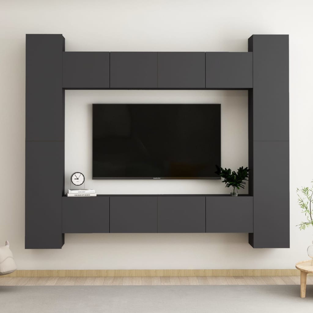 vidaXL TV-skåp 8 delar grå spånskiva