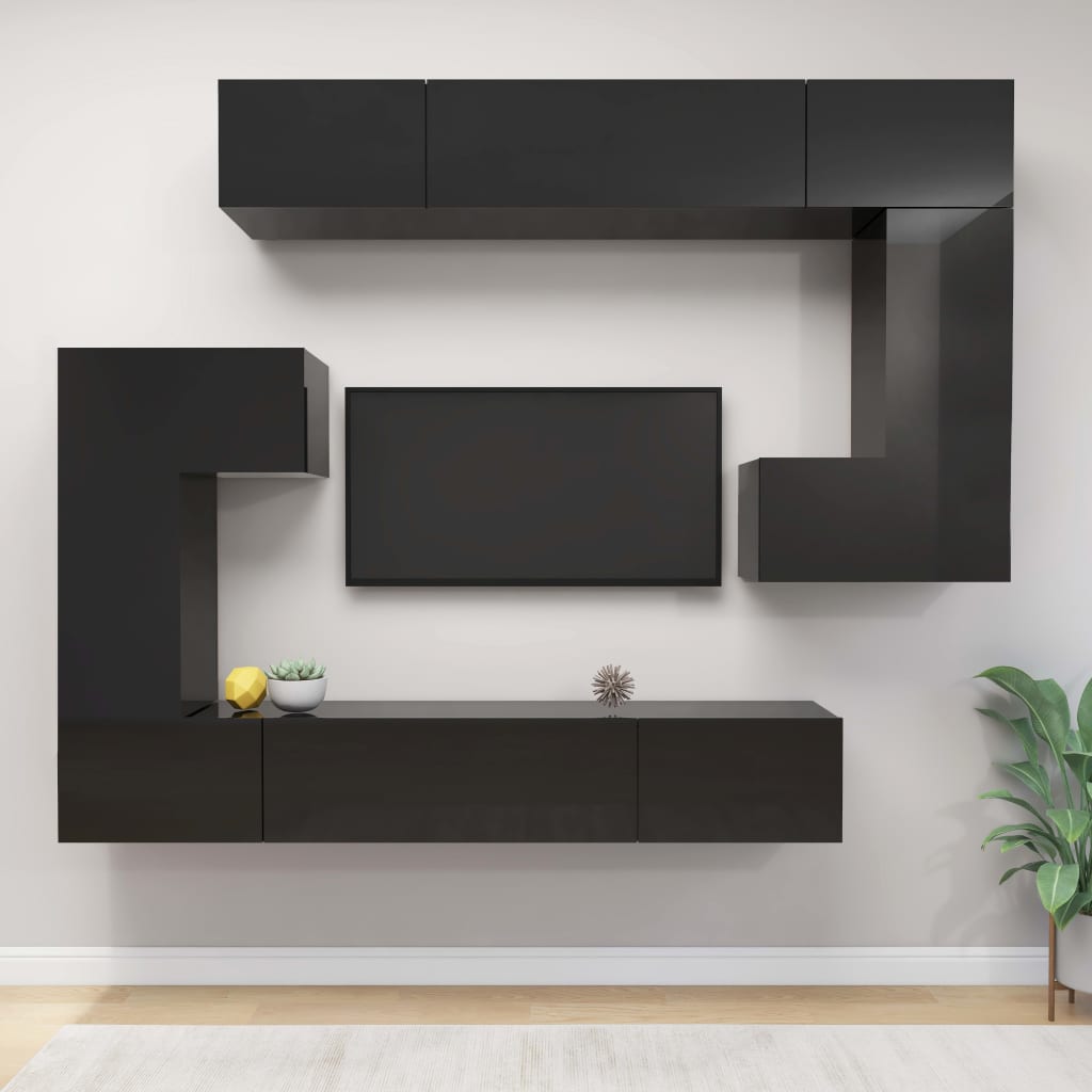 vidaXL TV-skåp 8 delar svart högglans spånskiva