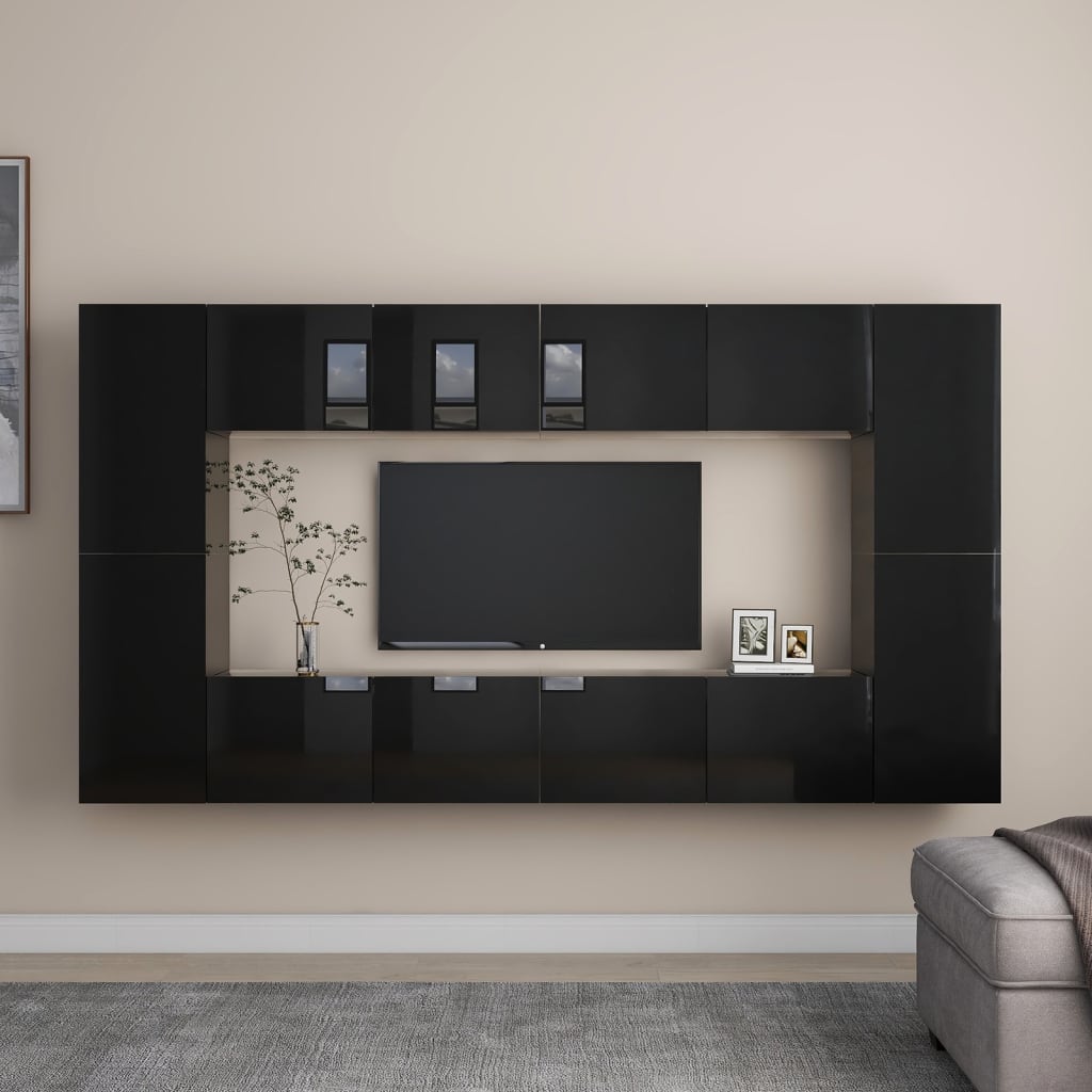 vidaXL TV-skåp 8 delar svart högglans spånskiva