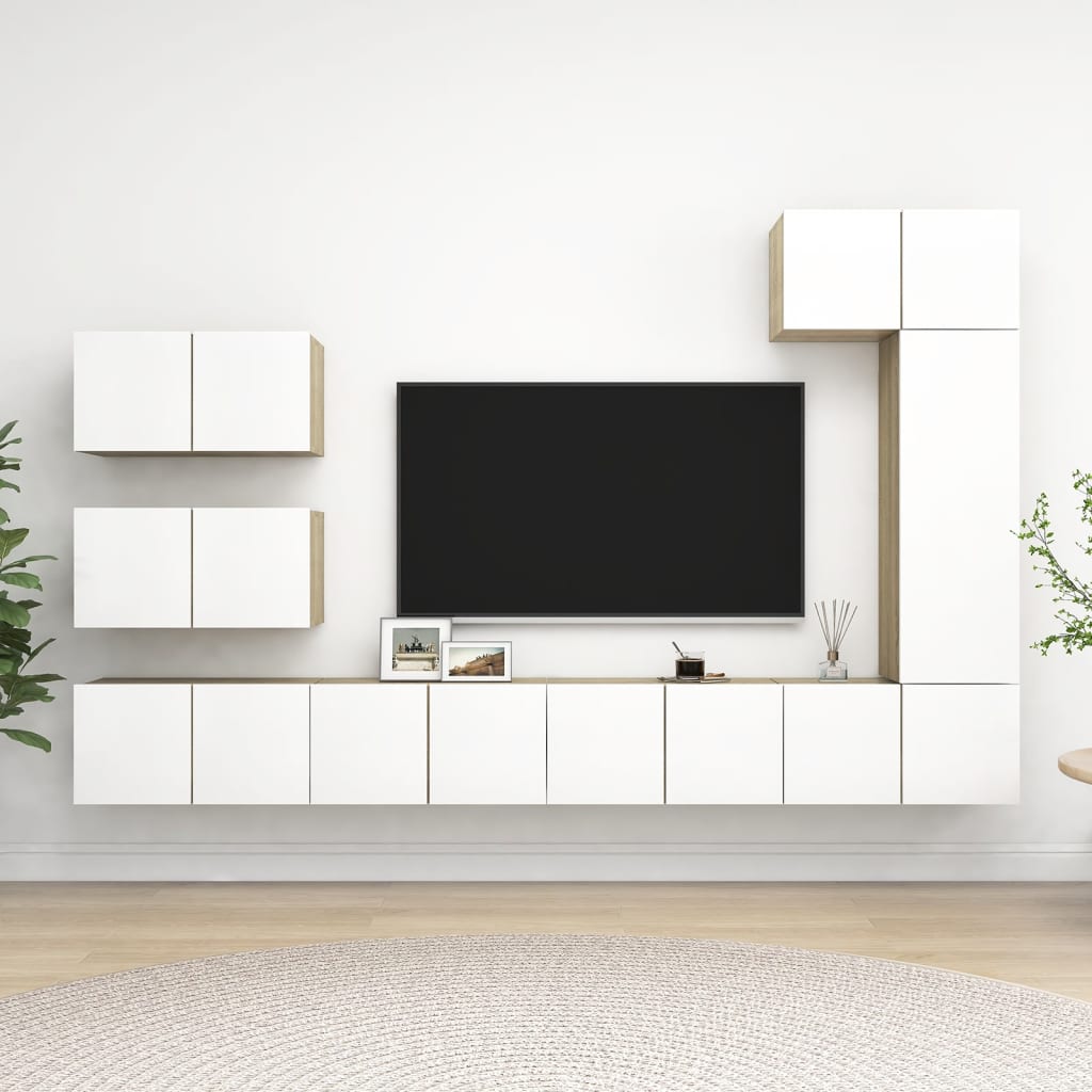 vidaXL TV-skåp 8 delar vit och sonoma-ek spånskiva