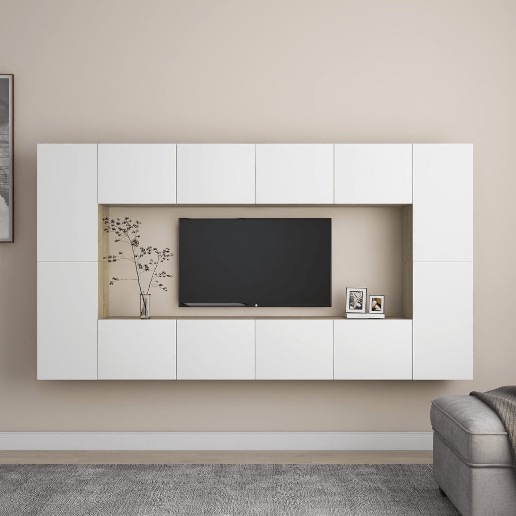 vidaXL TV-skåp 8 delar vit och sonoma-ek spånskiva