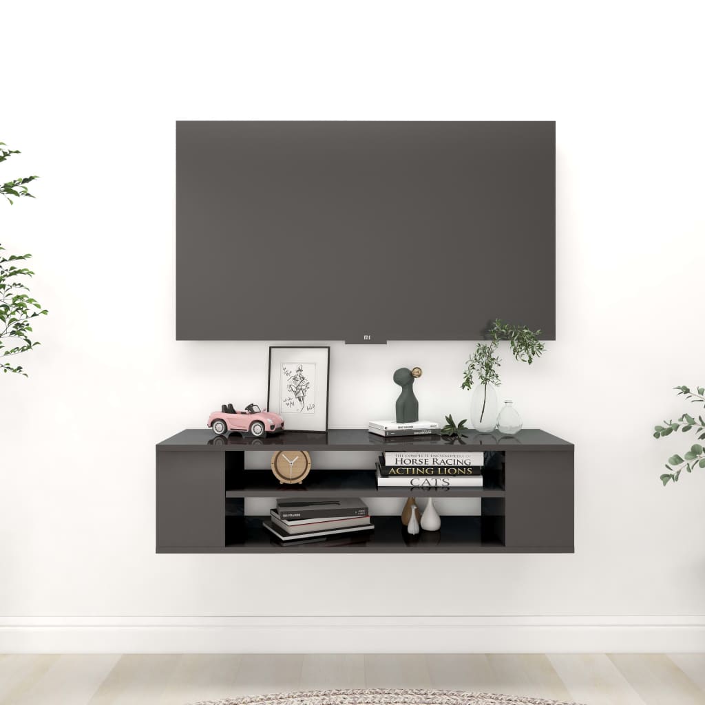 vidaXL TV-väggskåp grå högglans 100x30x26,5 cm spånskiva