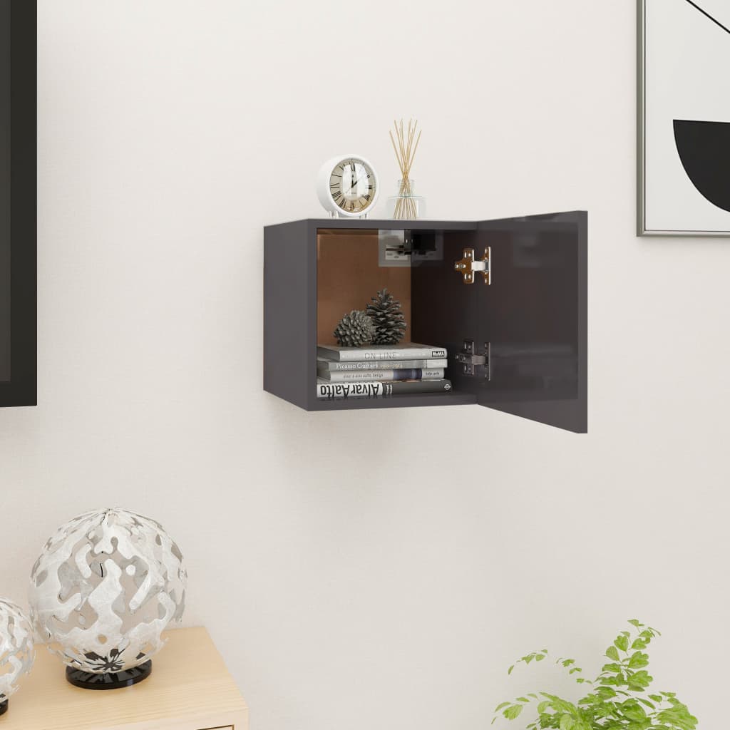 vidaXL Väggmonterad tv-bänk grå högglans 30,5x30x30 cm