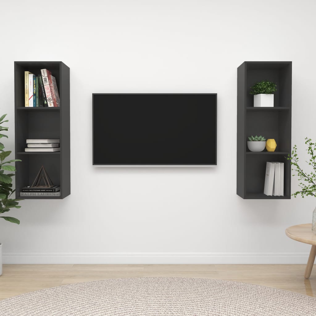 vidaXL Väggmonterade tv-skåp 2 st grå spånskiva