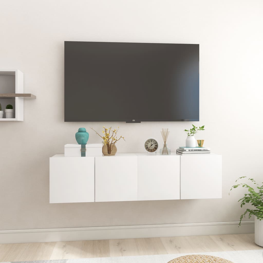 Denna uppsättning väggmonterade TV-skåp med modern design blir ett blickfång i vardagsrummet. Denna uppsättning tv-skåp fästs i väggen och blir ett tidlöst tillskott i ditt hem. Varje del har två fack som gör de till en perfekt plats att förvara tidningar, dvd:er eller andra saker i. Skåpen är enkla att rengöra med en fuktig trasa.