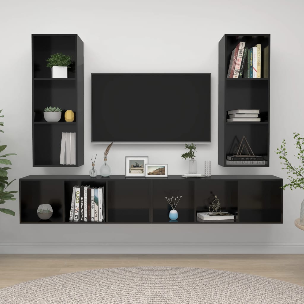 vidaXL Väggmonterade tv-skåp 4 delar svart högglans spånskiva