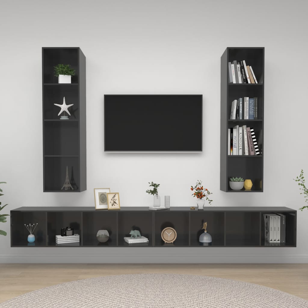 vidaXL Väggmonterade tv-skåp 4 st grå högglans spånskiva