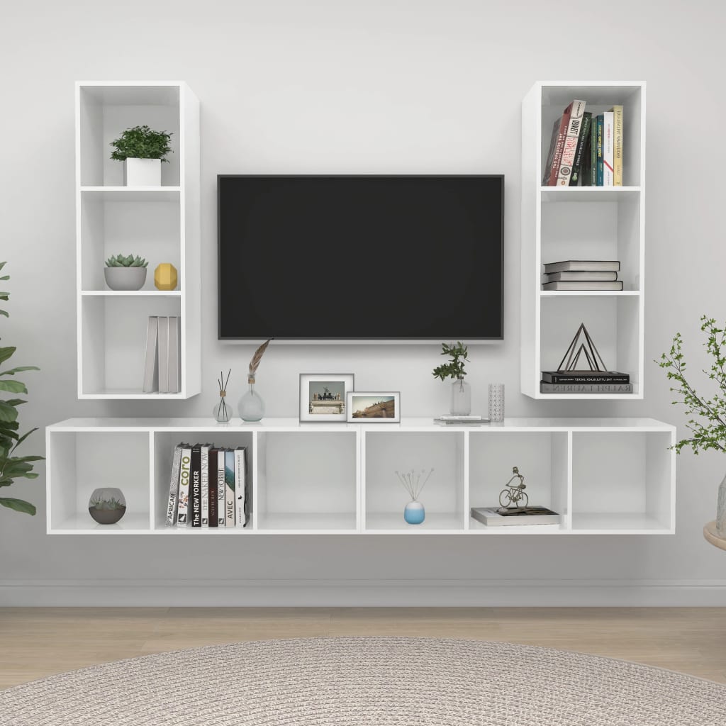 vidaXL Väggmonterade tv-skåp 4 st vit högglans spånskiva