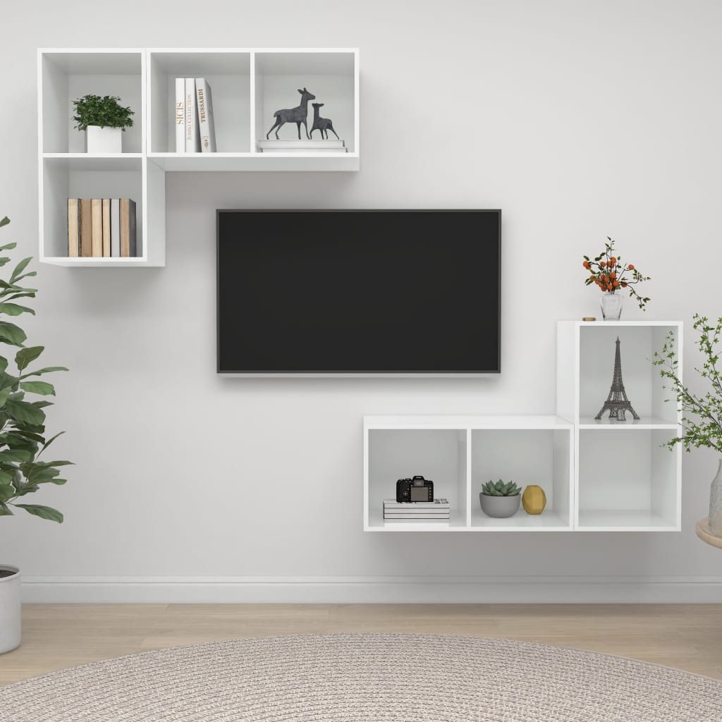 Dessa TV-skåp har gott om förvaringsutrymme för att organisera saker och blir definitivt en praktisk och iögonfallande detalj i ditt hem. Dessa TV-skåp kan hängas på väggen vertikalt eller horisontellt. Varje skåp har 2 utrymmen så att du kan visa upp eller förvara saker som du vill ha organiserade och inom räckhåll. Dessutom är skåpen enkla att rengöra med en fuktig trasa.
