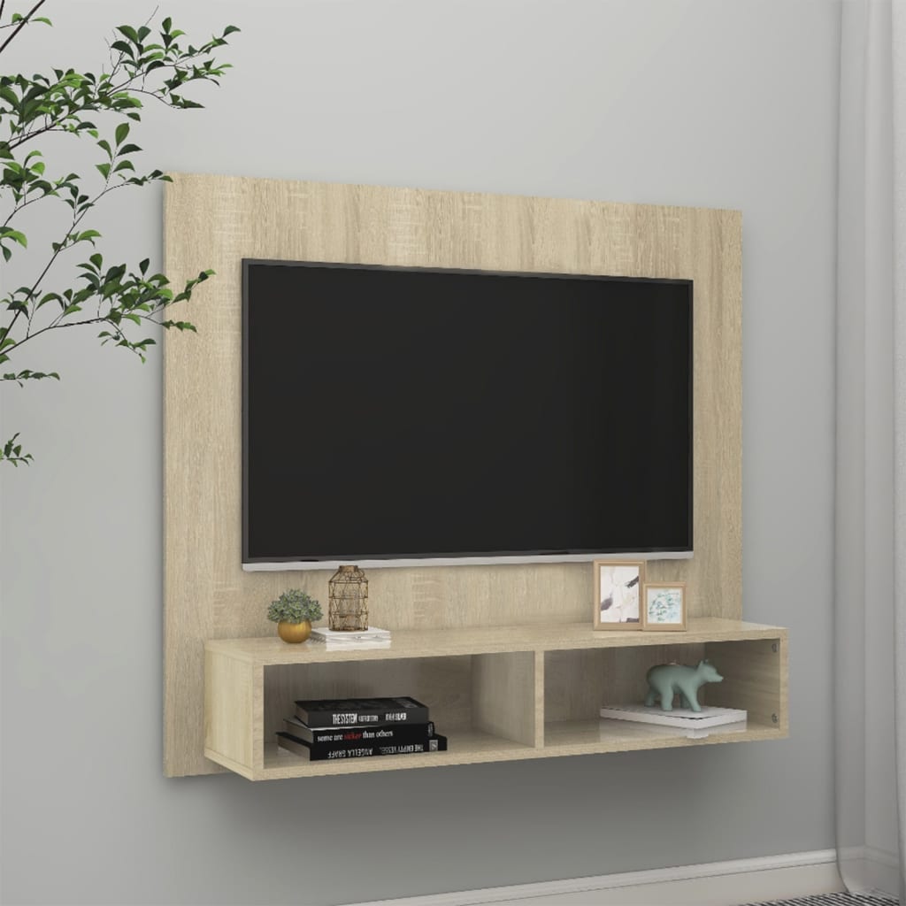 vidaXL Väggmonterat tv-skåp sonoma-ek 102×23,5×90 cm spånskiva
