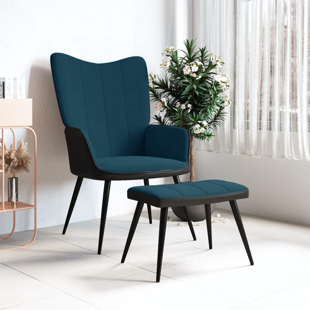 vidaXL Vilstol med fotpall blå sammet och PVC