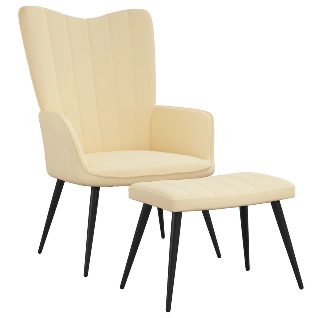 vidaXL Vilstol med fotpall gräddvit sammet