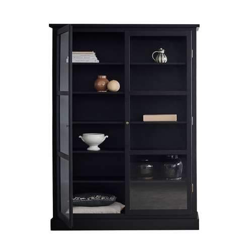 Vitrinskåp N4 Dark oak mått: Höjd 210 x Djup 40 x Bredd 145 cm. Hyllornas djup: 38 cm (5 stycken). Avstånd mellan hyllorna: 28 cm.