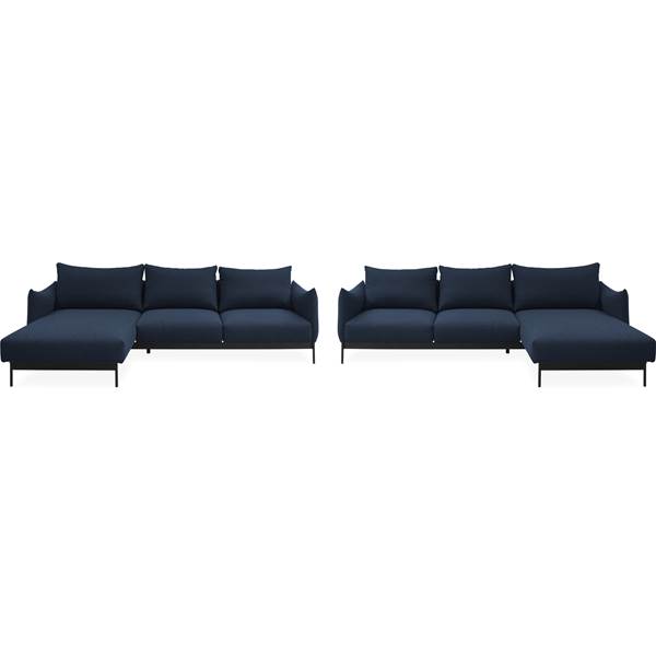 3 sits Vändbar Soffa med schäslong, siddehøjde 40 cm, levereras omonterad, monteringshjälp erbjuds inte. – Austin 339 Deep Blue klädsel och Stomme i svart pulverlackerad stål