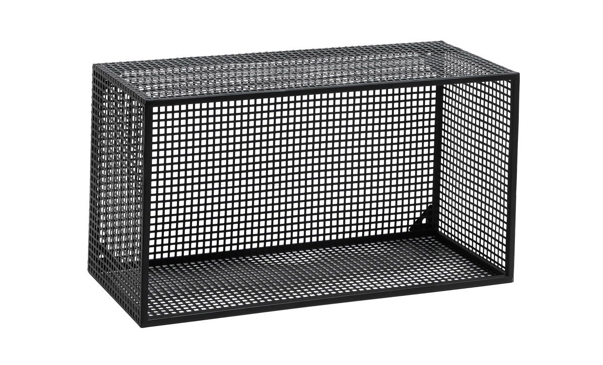 Denna stilrena avlånga hylla är en bra förvaring för alla hem. Med sin mörka stilrena svarta färg så är denna hylla ett perfekt sätt att ta in en designkänsla i hemmet. Rutorna i metall skapar vackra skuggspel när solen ligger på. Förvara dina favoritsaker i denna fina hylla från varumärket Nordal!Design & egenskaperStilren hylla med rutmönster.Möbeln är delvis handgjord, vilket betyder att utseende och finish kan variera något.Tillverkad i metall.Leverans & förpackningLevereras monterad.Antal förpackningar: 1 stFörpackningsmått: 35x28x63 cmVikt: 2,1 kg