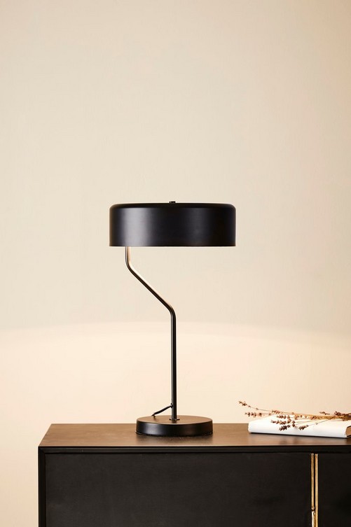 Bordslampa i mattsvart metall. Skärmen har vit insida som sprider ett fint sken. Lampan är i klassiskt modern stil som håller i längden och smälter in på ett diskret sätt. Svart sladd, sladdlängd 1,5 m. Material: Metall. Storlek: Total höjd: 34,5 cm. Kupa: ø 30 cm. Lampfot: ø 18 cm. Sockel/lampa: 1 st E14, max 25 w glödlampa eller max 5 w lågenergilampa. Ljuskälla medföljer ej.